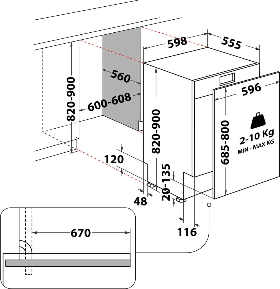 E 820 mm minimum nishoogte 900 mm maximum nishoogte Standaard droging Bestekmand€ 749,99
